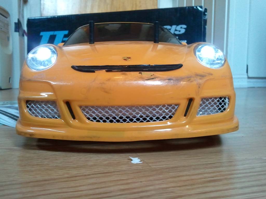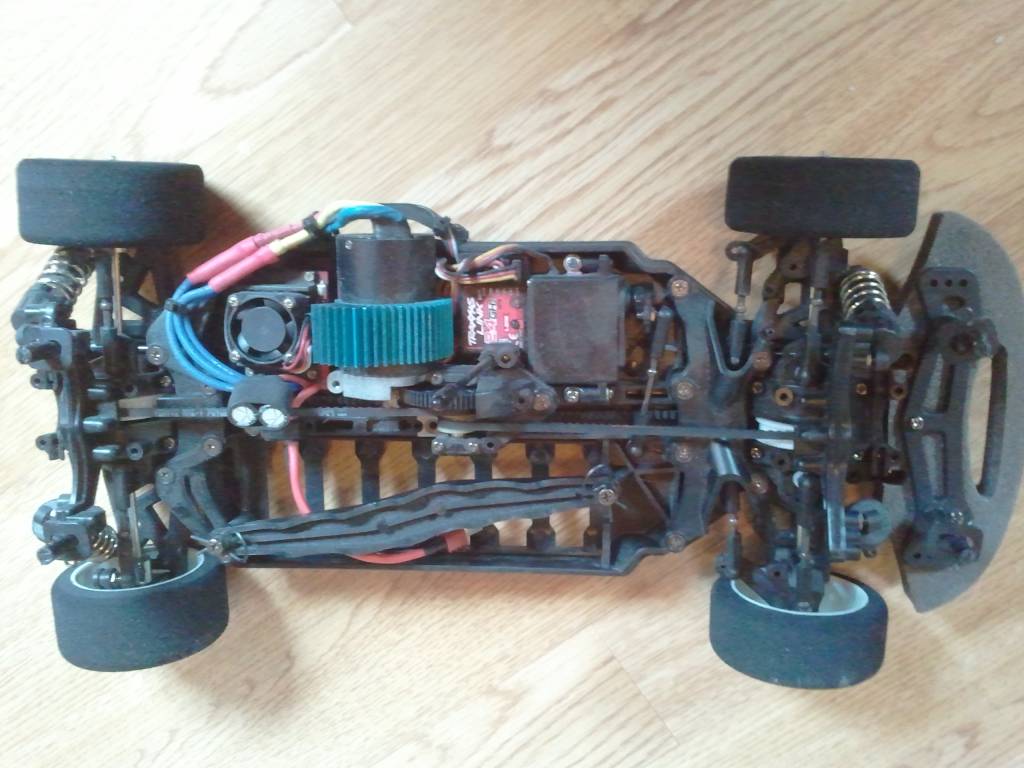 Tamiya TT01R med samme børsteløse oppsett som over. Differensialene er låst med gummistrikk, som betyr at de kan fjernes. 1500kr/bud