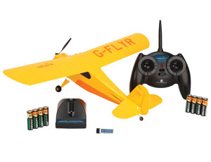 E-flite Ultra Micro Carbon Cub SS, en meget flott mikromodell som er utstyrt med lys og flaps, og som det også kan monteres flottører på. Som ikke det var nok, så kan den også håndtere krok for sleping av glidefly. Vingespenn på 61cm :D