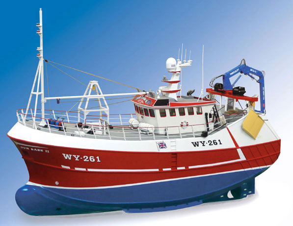 Rundt juletider fikk jeg i hus et byggesett jeg har siklet på i et års tid. Det er en tråler fra Model Slipway, og når jeg så den første gangen, så ble jeg rett og slett forelsket i båten. Skroget er rene badekaret. Båten blir 90cm lang, men bredden og dybden gjør at skroget ser gigantisk ut. Propellen er 6cm om jeg ikke husker helt feil, og båten skal også ha baugthruster. Om dekksåpningen blir stor nok, så kommer jeg til å putte i et 12v 26Ah blybatteri, for skroget trenger uansett en god del ballast.