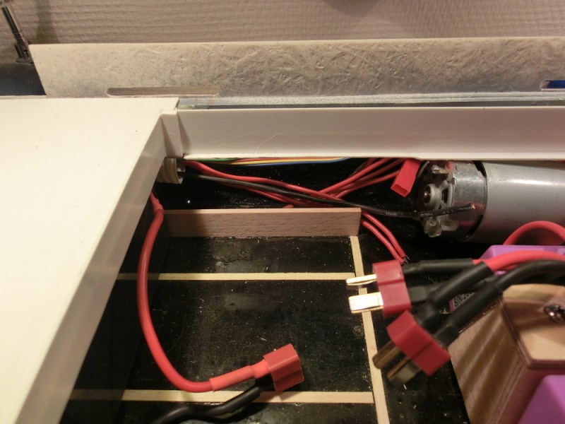 Foreløpig siste endring inni båten blir strukturen til strømnettet. Slik det er nå bruker baugpropell et 6v mottakerbatteri som strømkilde. Denne skal jeg ha over på hovedbatteriet. Jeg skal også ha en forgrening fra hovedbatteriet som skal gå til lys og lignende.