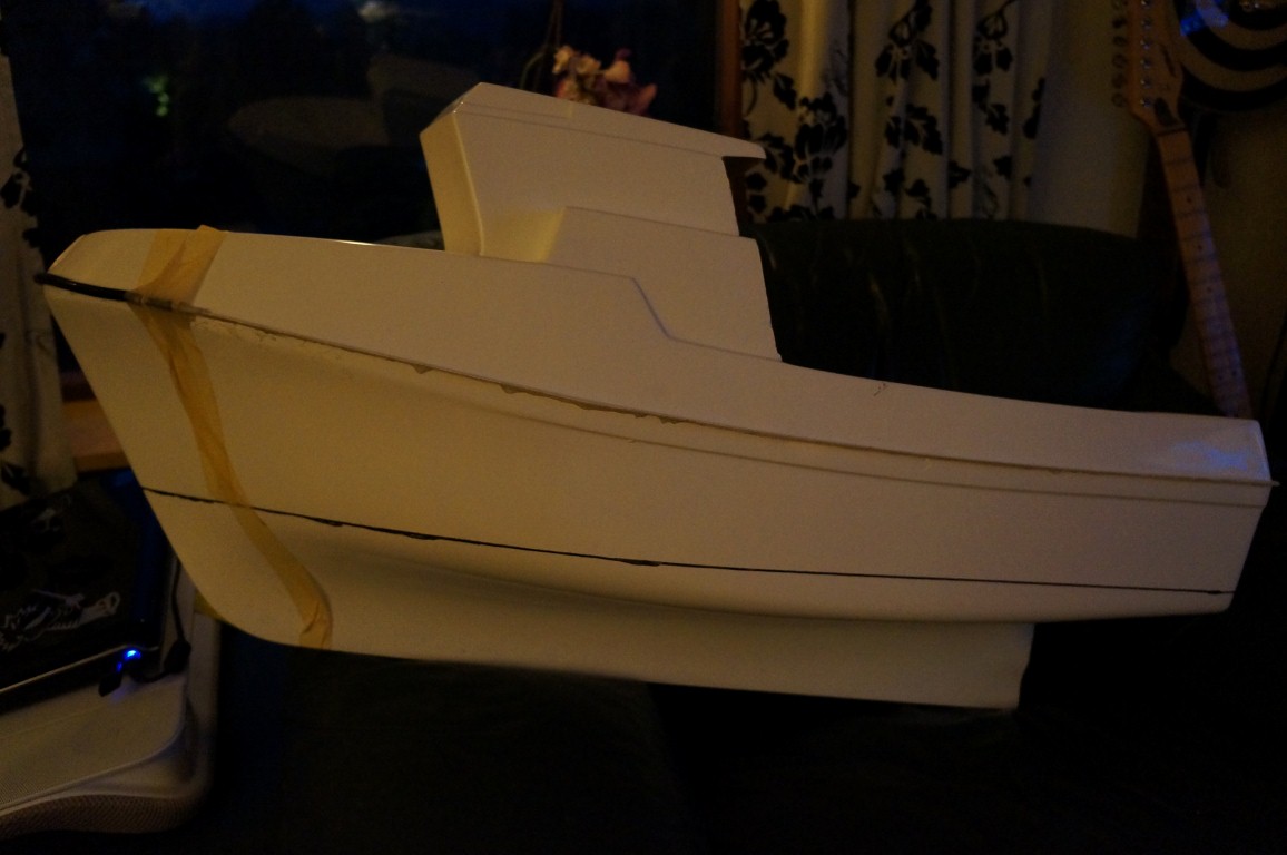 Egentlig litt greit at skroget er såpass ferdig, for om bare den groveste elektronikken kommer på plass, så ser den mer ferdig ut på vannet enn den er :D
