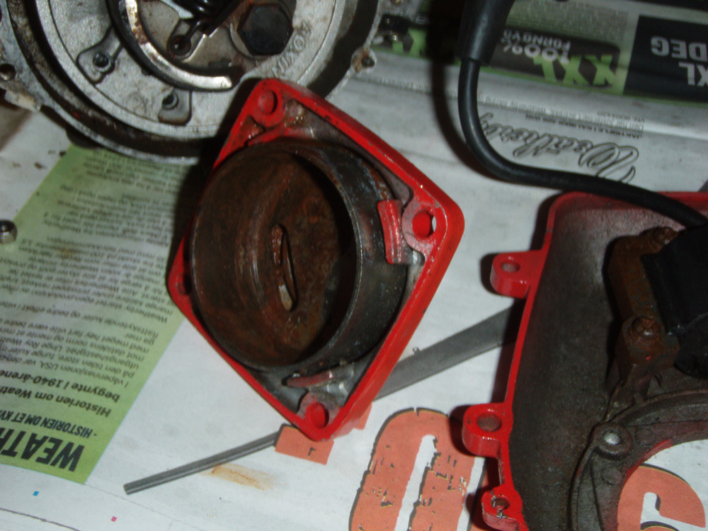 Har ikkje noe bilder av motoren slik den ser ut innvendig, da eg ikkje har klart å få den opp pga rustne skruer, enda.