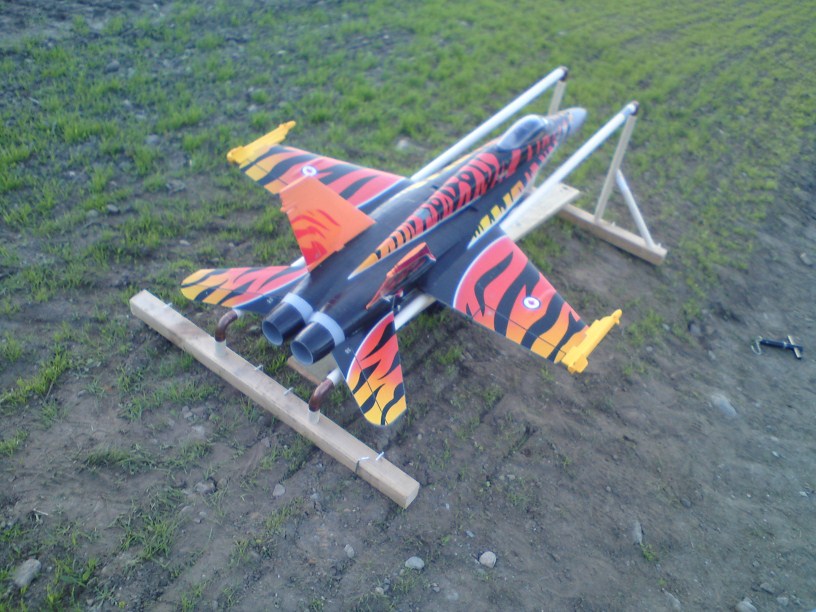 Ikveld la eg strikken dobbelt, og drog den til 6kg på fiskevekta. Skal si det vart fart i sakene. Nå går det an å kalle den ei utskytings rampe. Flyet er i lufta på1-2 sek. Ingen problem med å starte opp motoren etter 15.20 meter. vector! Nå MÅ du lage en krok på din fun jet, og ta turen. No flyr eg på Horstad flata. Ca en km etter tunnelen på veg mot Skaflestad. Faktisk den beste plassen eg har flydd på i min fly karriere. VELDIG åpent og STORE bøer. Eg kommer kun til å fly elektromodeller der, da det var der folk flydde før i tiden, men fekk ikke lov å fly med bensin da det vart klager på støy. Bror min og eg har vert der i fleire timer ikveld også. Men uansett. Nå er rampa akuratt som eg vil ha den. Trur kanskje eg kan dra opp F 18 med den også. Skal prøve i morgen. Vi flaug mye med easyglideren i kveld. Bror min har tatt flyginga like fort som meg, og eg er bittelitt stolt. Kjekt å sjå kor mykje han liker hobbyen. Så nå er det ikke bare musikk han driver med, ikke at det er en uting. Eg hadde bare oppe fun jetten en tur. Imorgen skal vi gjere det vi kan for å filme den og skyte den med radar. Skal sette opp en palle til sjold.hehe. Eg hadde noen lowpass, og fy faen. Må bare sjåast. Den er liten, og det gjer seff til at den forsvinner fort. Det er nysådd der stripa skal klippast, så det tar sikkert litt tid før den blir fin. Men gress våkser jo nesten alltid for fort, hehe, men i dette tilfelle er det jo faktisk bare bra. Vector! Ta med deg jetten en dag da? Så skal eg ta med meg båten til Florø en dag. Deal. Forresten. Eg dremla ett hol under jetten, og fylte det med epoxy, så stappa eg ett rorhorn nedi. Så dremla eg til rorhornet sånn at det har blitt en fin krok. Fungerer utmerket. Eg måtte jo lande på den nysådde bøen, men uten skader, og kroken er fortsatt på plass. Eg har jo også brukt noen karbon lister rundt på kroppen, og en mitt under. Så epoxyen sitter nok fast i den også. Kroken sitter iallefall noe inni h.... Var litt heldig med den stripa. Det er faren til beste kompisen til bror min som eiger bøen der. Og vi kan fly der så mye vi vil. Eg kommer nok til å bruke Skaflestad også, men no koser eg meg så mye på nye plassen at eg held meg på Horstadflata ei stund. Pluss det er jo ikke langt fra halve vegen for meg å kjøre. Det er vel det vi kan kalle en vinn vinn situasjon.hehe :D Eg skal legge til noen bilder av rampen her.