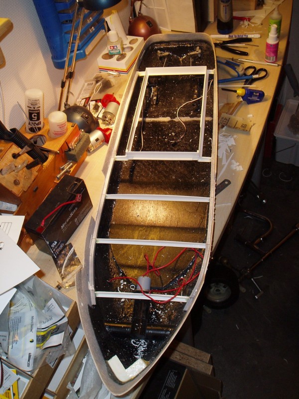Satser på å få slipt litt rundt utgangen av propellakslingene og feste litt av rammeverket idag.