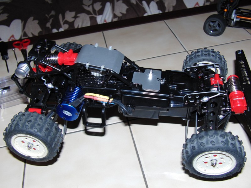 Det går mye i bil hos meg for tiden, og i dag plukket jeg frem Hotshot for bygging. Jeg kjøpte den for en god stund siden da den først ble sluppet som re-release. Jeg bygget bilen på noen timer etter jobb idag, så det gikk greit unna. Underveis i prosessen monterte jeg inn kulelager istedenfor medfølgende plastlager, dette er en absolutt nødvendighet i mine øyne. Jeg har også montert et børsteløst oppsett, for jeg har mange gamle dekk som jeg vil børne bort :mrgreen: