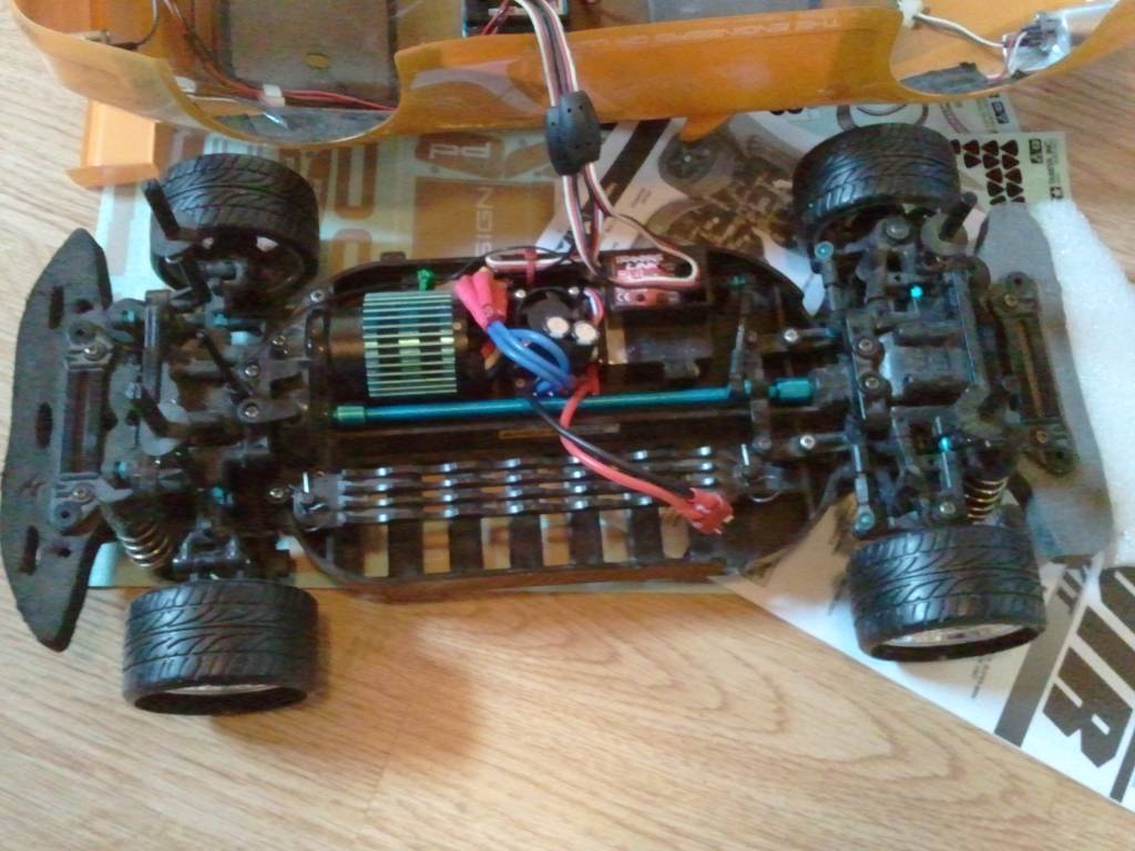 Tamiya TT01R med samme børsteløse oppsett som over. Differensialene er låst med gummistrikk, som betyr at de kan fjernes. 1500kr/bud