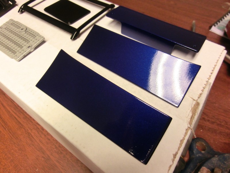 Nå er iallefall alt på førerhuset og sidedeksel ferdig lakkert blått og sort, og klarlakk gjenstår.