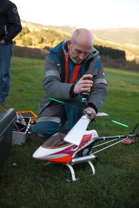 Har nettopp starta med helikopter, og er på mitt 10. batteri på ein T-Rex 500CF. Har så vidt tatt steget vidare frå stabil hovring, og pulsen stig nokså raskt når halen ikkje lengre skal stå rett mot meg! Men hittil har det gått fint, simulatortrening gir stor effekt! (Hovra nose-in på 5.batteriet). Har forøvrig hytte på Kråkeneset (sørsida av Førdefjorden, rett overfor Naustdal), så det kan godt hende eg tek meg ein tur innom Skaflestad ei helg.