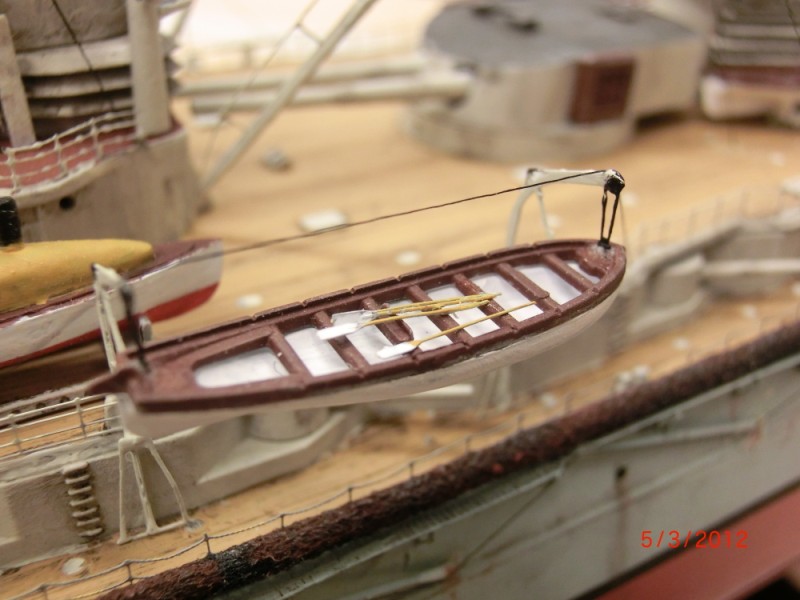 Bilder av modellen: (legg spesielt merke til små detaljer som hengetrappen, rekkverk, væringseffektene, riggingen, årene i robåtene og annet småtteri. På et av bildene har jeg satt en deansplugg frem for sammenligning)