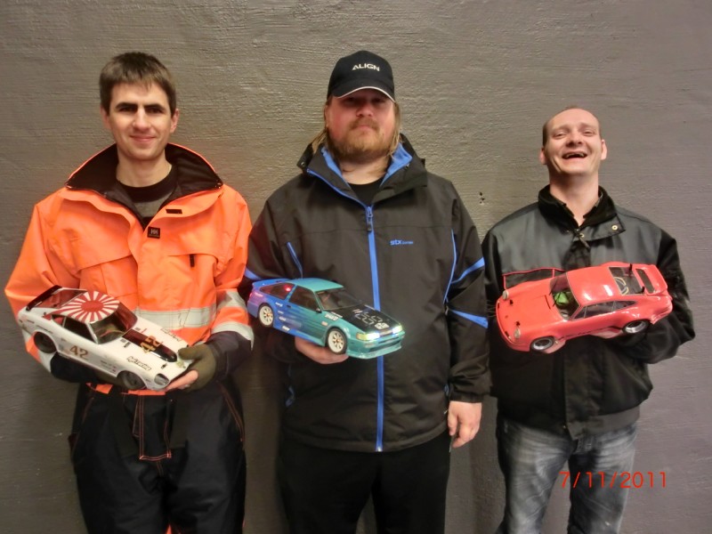 Kveldens dobbelløp var vel egentlig ikke annet enn en suksess. Det var kjekt for en gangs skyld å slippe frakting av bane, samt montering og demontering. Vi gjorde nok også rett i kjøre ca 10 runder. Dette er en såpass kort bane at mye kan skje, og det er greit at deltakere får litt tid på seg til å hente inn motstanderene sine. Et par spennende runder var det også, min personlige favoritt er når Stig Ivar Haukås lå på 3.plass og Henning lå på 4.plass. Så knakk Stig Ivar det ene hjulet, og måtte kjøre med 3 hjul siste runden, med Henning hakk i hæl. Henning klarte å hente Stig Ivar inn igjen, og kapret 3.plassen. Men Stig Ivar skal ha skryt for god spirit, det var aldri snakk om noe annet enn å prøve å fullføre løpet :D