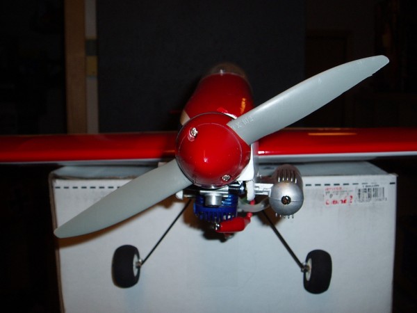 Et bilde av fronten. Motoren er altså en 15-size, og ikke fysisk stor. Propellen er en 8x4