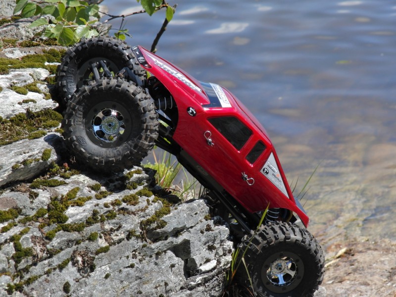 Jeg har fått leket meg litt med crawleren utenfor huset her hjemme, og synes den fungerer bra nå, men føler også at det skranter litt på motoriseringen. Det går stort sett bra, men når det blir for stor motstand kan det bli litt problemer. Ikke med tanke på stigning, men når dekkene blir stående under sterkt press. Helt fra starten av har jeg hatt lyst til å ha børsteløst i denne, og ser at tiden snart er inne for å investere i det. Jeg har sett litt på Novak sitt system for 3S lipo, og det blir nok noe slikt.
