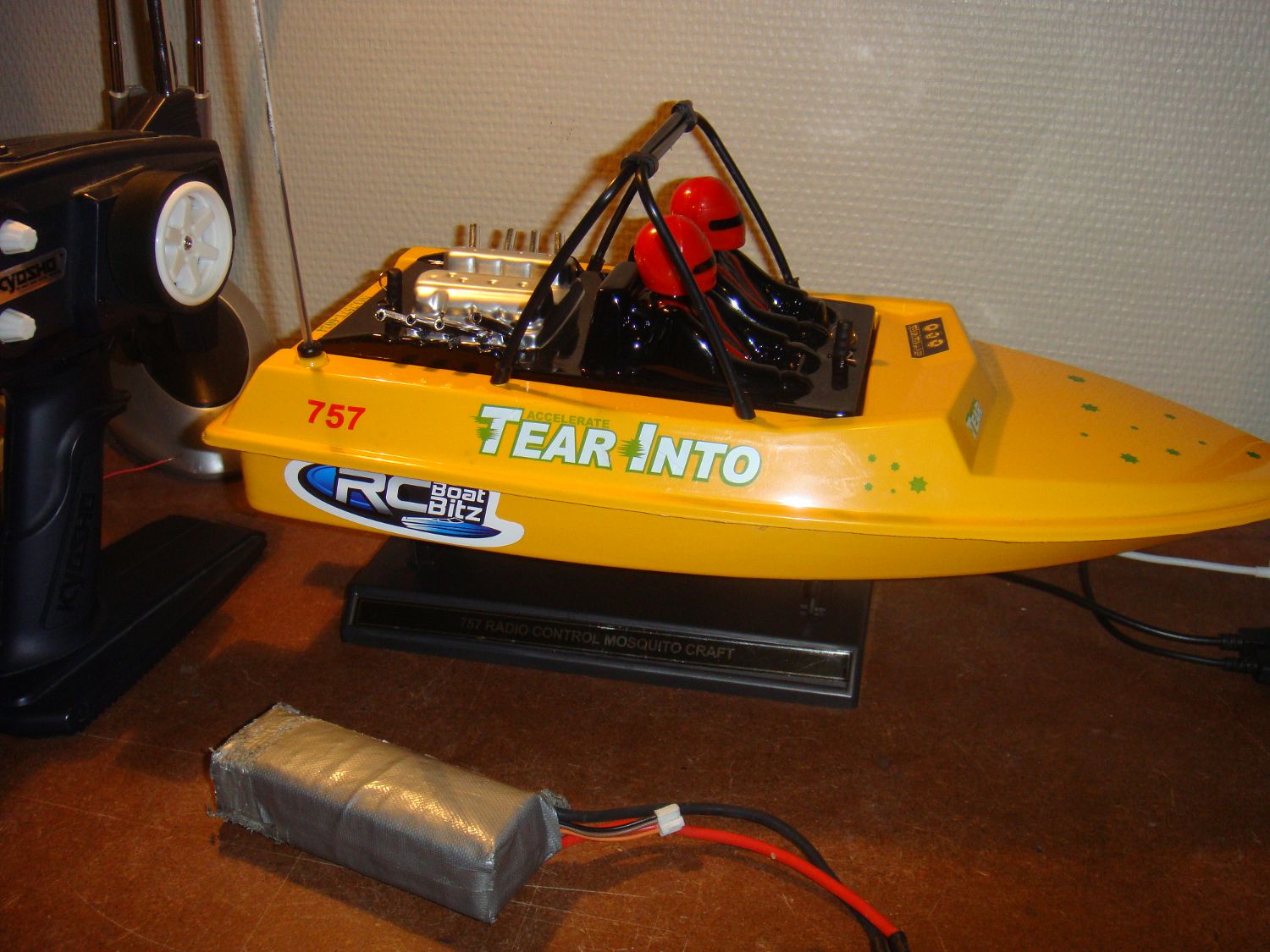 Fikk båten på fredag og røsket ut søppelet som blir levert med båten. Installerte så en 3700KV motor, 40A regulator, 27MHz mottaker, HS81 servo og 2,2Ah 3S LiPo.