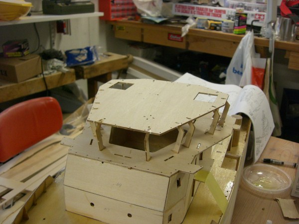Har hatt nokre timar i dag og, har fortsatt på overbygget, og har waterproofa heile overbygget innvendig og utvendig med finishing resin. Har også lagt på et nytt strøk på skroget.