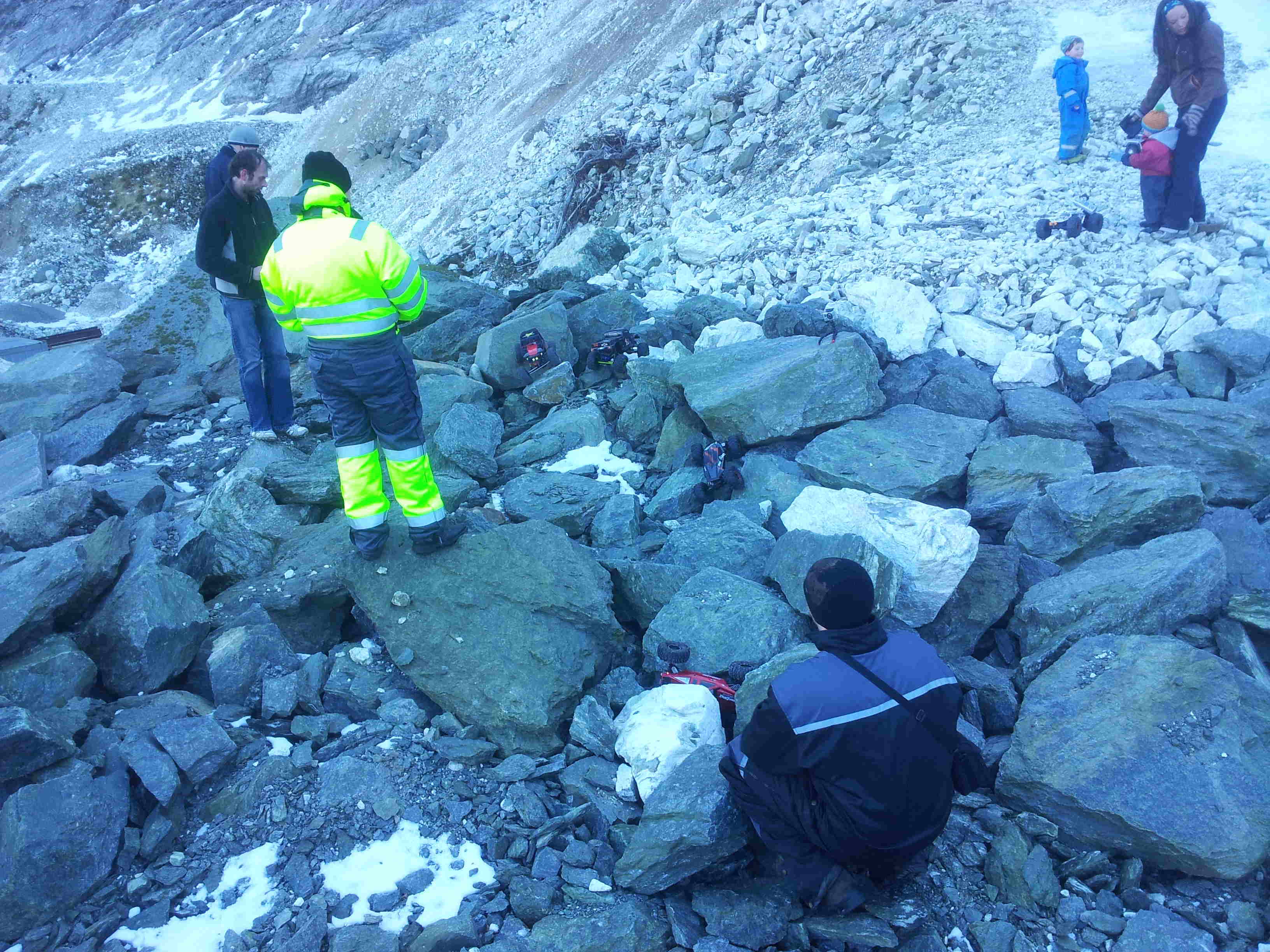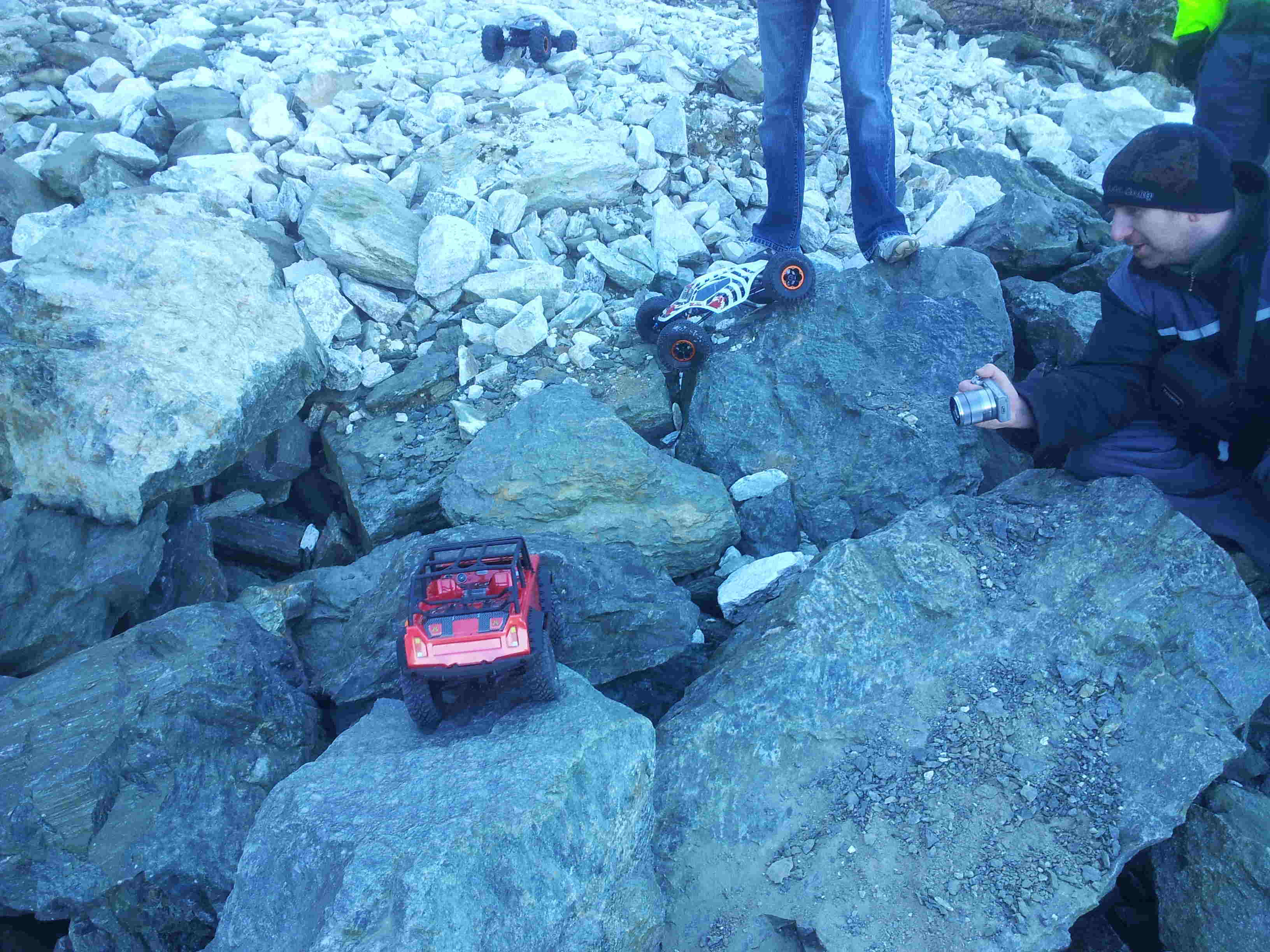 Skal få lagt ut noen bilder i løpet av dagen, og kanskje sette sammen en videosnutt også. Dagen endte i sannsynligvis brent motor på Comp Crawler, og brent bakre styreservo på tamiya CR01. Men moro var det :D