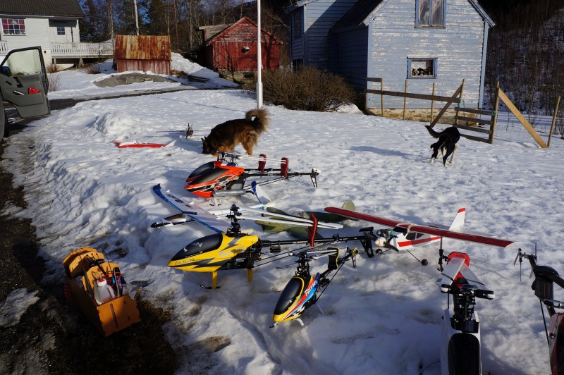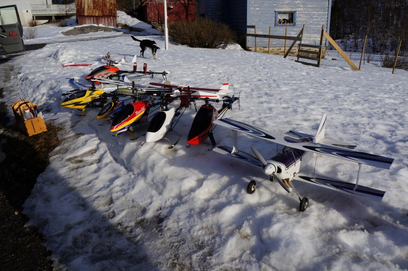 Hadde med noen flymodeller også, blant annet en P40 warhawk, Yak54 og Blaze, så jeg fikk flydd litt. Av helikopter hadde jeg med Trex 600E og Trex 600N, og Henseleit Rigid. Sistnevnte var det eneste helikopteret jeg flydde i dag. Fremdeles er jeg veldig forsiktig med dette helikopteret, vil lære det å kjenne gradvis. Har ikke lyst til å knalle det før jeg har fått flydd det en varm sommerdag iallefall :mrgreen: Men uansett, TDR flyr meget fint, og jeg føler meg mer og mer komfortabel med det, til tross for store nerver når jeg flyr det. Sikkert den eneste modellen som jeg absolutt ikke har lyst til å knalle helt enda.