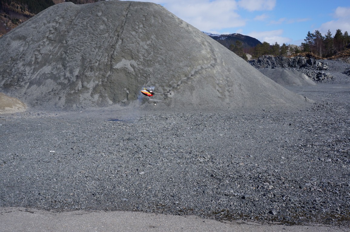 På andre tanken fikk jeg motorstopp inverted i lav høyde, tipper det var rundt 10 meter eller deromkring til bakken. Da er det bare å beholde roen, for ting skjer fort. Det er viktig å iallefall å få inn riktig posisjon og kurs, og ikke bruke opp energien i bladene for fort. Heldigvis er T-rex 600N et fantastisk helikopter når ting først går galt. Hovedbladene holder godt på energien, så jeg fikk snudd det og landet greit. Ingen skade skjedd. Årsaken til motorstoppen var den klassiske lite fuel på tanken. Jeg flydde totalt 4 tanker, og det tilsvarer ca 40 minutt flyvning. Jeg hadde et par "close encounters" med bakken, men alt gikk bra. Etter tredje tanken sjekket jeg over helikopteret etter løse skruer, men alt ser ut til å holde seg på plass. Veldig fornøyd så langt, motor/temperatur og elektronikk fungerer fint, og vi er helt i starten av sesongen :D