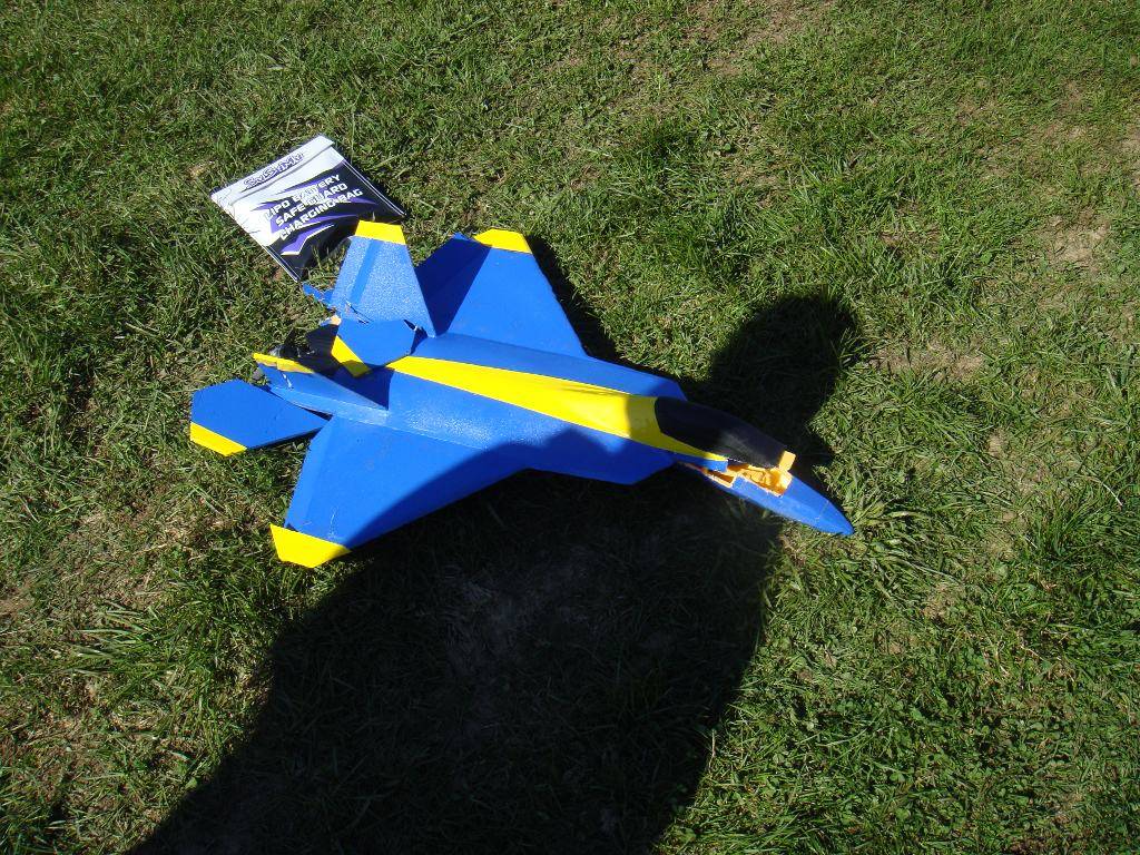 Storkoste meg med Raptoren jeg har bygget, men etter noen low pass og high alpha forsøk gikk det hardt i bakken. Vi var tre fly i lufta og jeg måtte vike unna Bjørn sin hovrende Katana. I krasjet fløy batteriet ca. 5 meter og landet i elva. Fant det heldigvis til slutt.