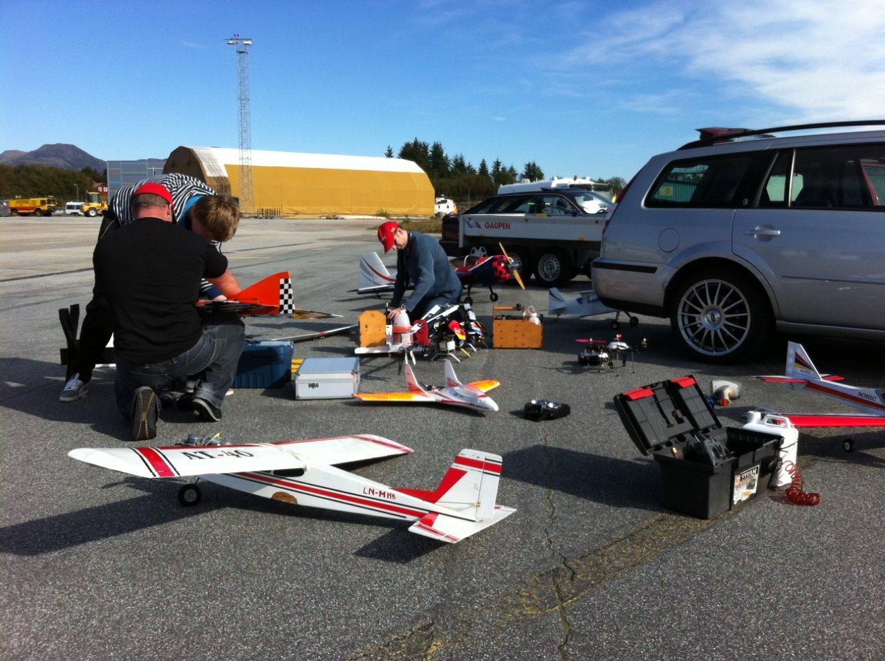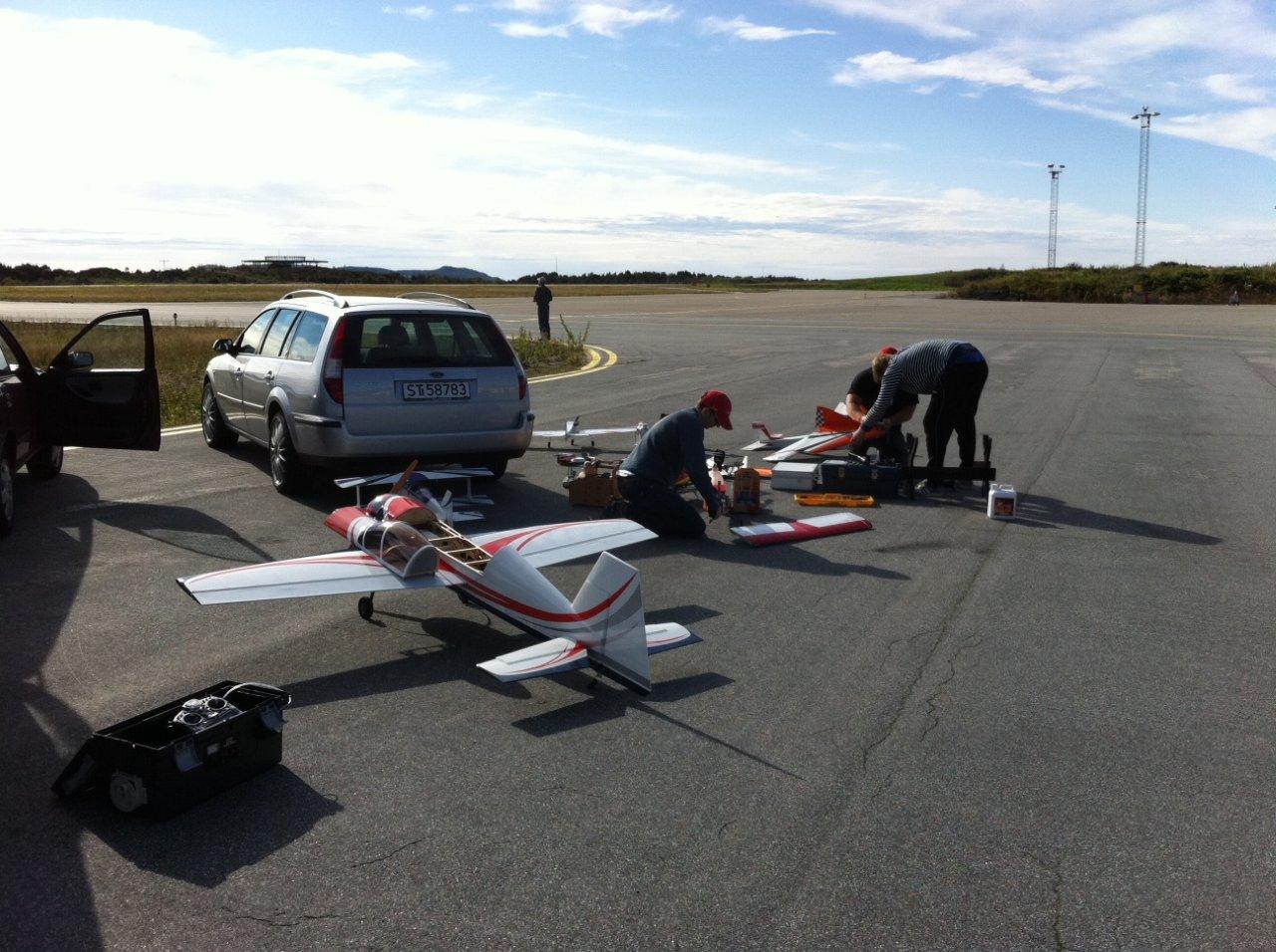 Jeg prøvde også T-rex 500 over en gressflekk på flyplassen, men synes flyplassen egentlig egner seg best til fly. Om en holder seg over gressmarkene med helikopter så går jo det fint, men å fly helikopter over hele himmelen ville jeg ikke. Når dette skjer igjen, så vil jeg heller benytte muligheten til å justere på helikopter, for der er nok flyplassen godt egnet. Fly blir et must uansett :D