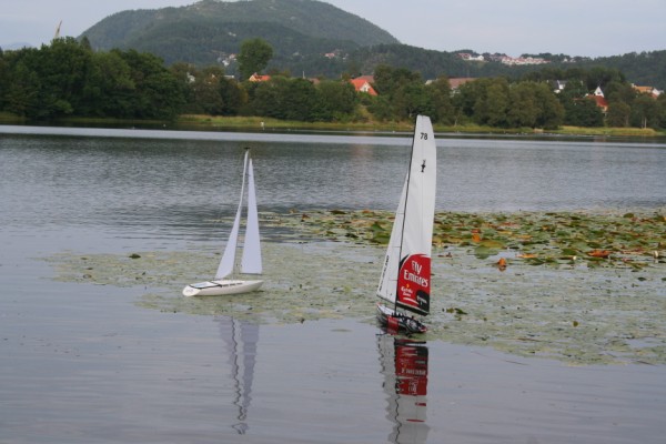 Meg, brodern og sokken var på Storevatnet i kveld og testa ut seilbåtane våre. Lite vind gjorde til at det blei litt vanskelig å få fart på sakene men samtidig fikk vi sett kor lite vind som faktisk må til for at en skal kunne manøvrere på skaplig vis. Broder'n blei liggande og stange i vannliljene så gummibåt måtte til, det måtte det og når vi skulle til land da vi ikkje blei lei før det var helt blikkstille :D Ingenting blei ødelagt i dag så i morra blir det nok enda bedre med vinder opp mot 4 m/s. Regner med å stikke ned omtrent på samme tid som i dag, altså mellom 18 og 19. Skal se om eg kan få lagt ut nåkken bilder, dessverre har eg ikkje teleobjektiv så det blir bittesmå båter på et stort vann.