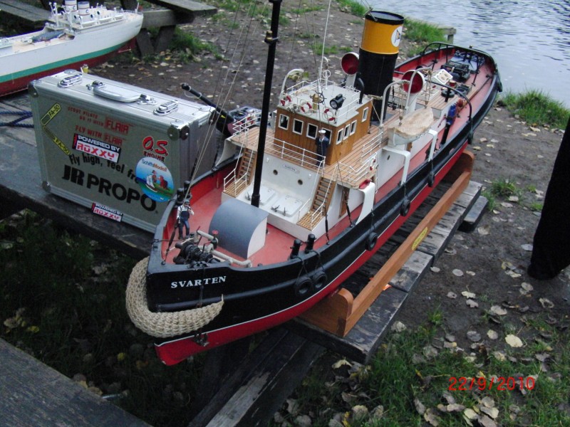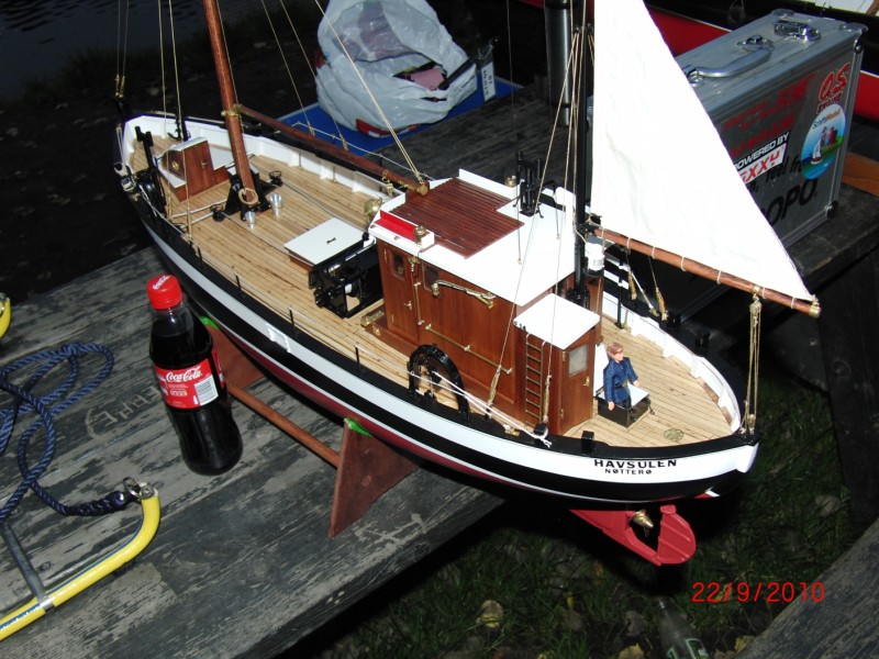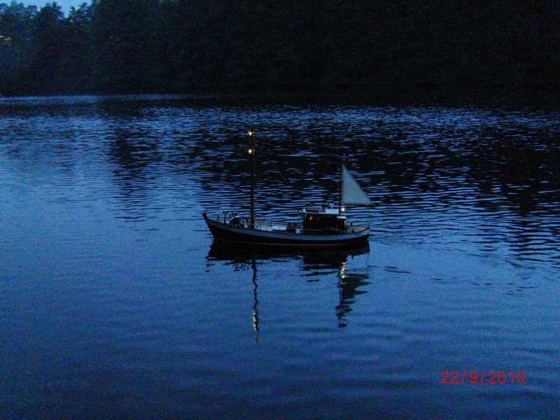 Etter besøket hos Norwegian Modellers tok vi turen til den berømte 3.dammen i tønsberg for å se på modellbåttreff. Vi var ganske uheldig med været, det regnet og blåste en del, men vi fikk se litt. Forholdene kom seg etterhvert, men da ble det så mørkt at det ble håpløst å ta bilder. Jeg fikk knipset og filmet littegrann, men med svært varierende resultat. Det var veldig kjekt å studere båtene med egne øyne, det var 4-5 båter som var virkelig flotte å se på. En av mine favoritter var en scratchbygget snekke som var helt utrolig fin. Jeg fikk dessverre ikke sett den på vannet. En annen favoritt var et såkalt hvalkokeri, som hadde mye fin belysning og et artig tema. Ellers hadde de en kommentator med mikrofon, og det var også litt kjekt. Enkel servering med kaffi og vafler var også på plass. Litt bedre vær, og dette hadde vært helt knall :D