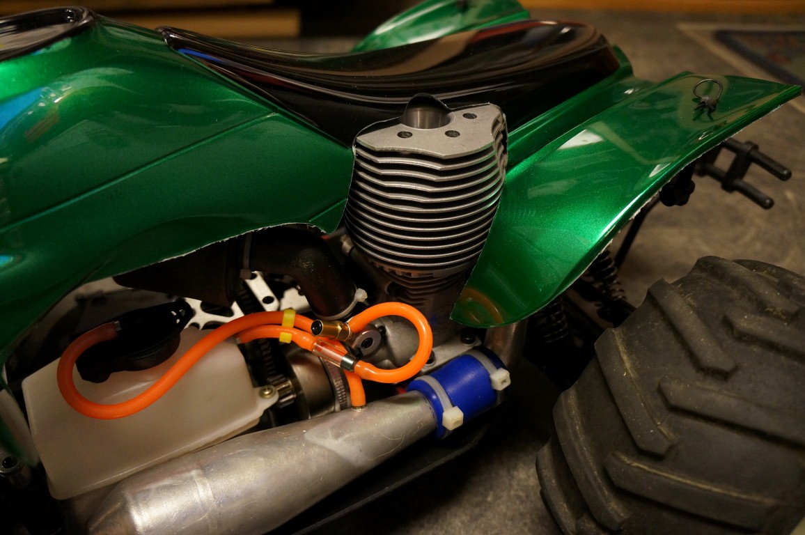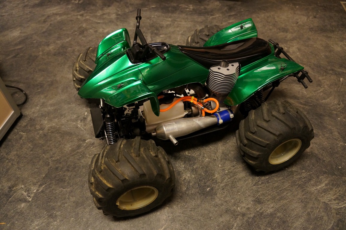 Jeg har nå gravd frem min gamle Thunder Tiger EK4 for å sette denne istand til sommeren. Bilen er hel og fin, men mangler elektronikk. Jeg har satt et par Hitec HS5645MG i bestilling, det er den digitale versjonen av HS645MG, som ble mye brukt i gamle dager, og som fremdeles er i salg. De er ikke så kostbare at det gjør noe, men har greie prestasjoner og tåler ganske mye. Jeg putter i 2 slike, og så duger det i massevis til bruken jeg har tiltenkt bilen. EK4 har jeg for lengst gitt opp som en herjebil, og har kun beholdt den på grunn av motorstørrelsen. Den gjør ikke noe særlig mer enn 60km/t, men torq er det i massevis. Litt moro med en ekte "bigblock" motor er det også, den er iallefall latterlig stor. En .70 motor tilsvarer ca 11.5cc, så det sier seg selv at det er masse volum til å være en 1/8 nitro monstertruck :D