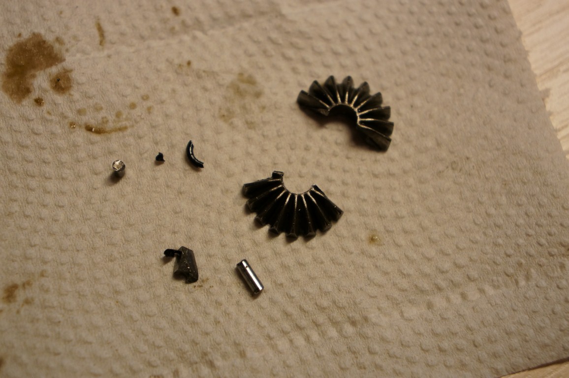 Det viser seg at brytepinnen i diffen var gåen, men dessverre hadde den tatt med seg drevet også. Og selvfølgelig, denne delen hadde jeg ikke liggende, så da er det bare å smøre seg med tålmodighet litt til :D