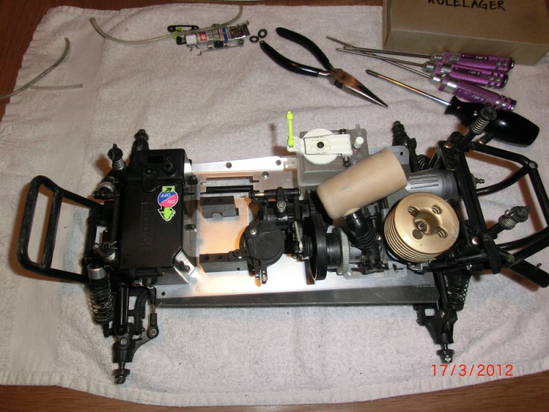 Jeg har gravd frem en nitrobil jeg kjøpte i 96 eller deromkring, for å ta en overhaling på denne. Sist gang den ble brukt så ble den bare pakket ned i en eske, og der har den ligget siden, full i grus og dritt. At den har ligget i ca 12 år er mest sannsynlig, så da fortjener den en skikkelig rengjøring, ingen tvil om det. Og det hadde vært moro å kjørt den igjen også :mrgreen:
