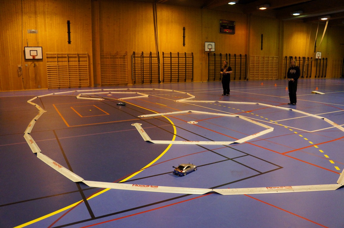 Det er nok også liten tvil om at vi alltid bør legge ut bilbanen, for den tilfører det lille ekstra til hallen. Det er litt styr å drasse på den, men det er også styr med å lage til baner med tape og kjegler. Banen skal med neste gang også, kanskje vi kan prøve å legge opp en litt større bane?