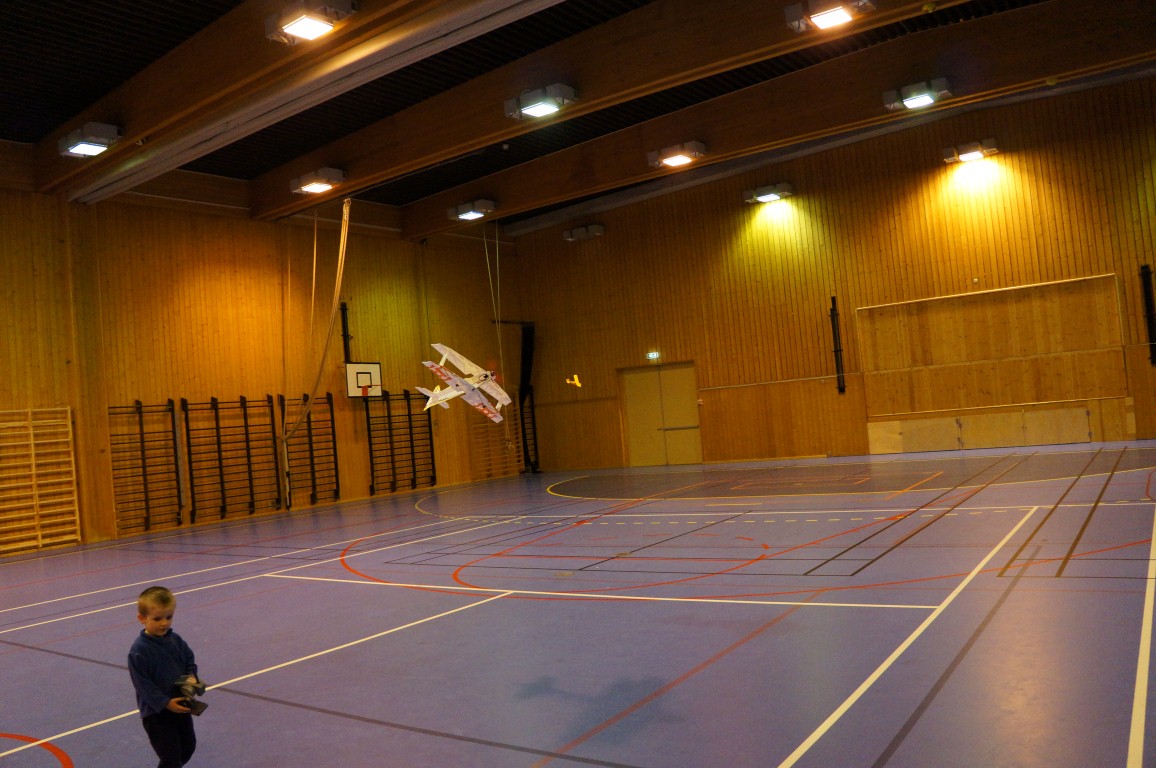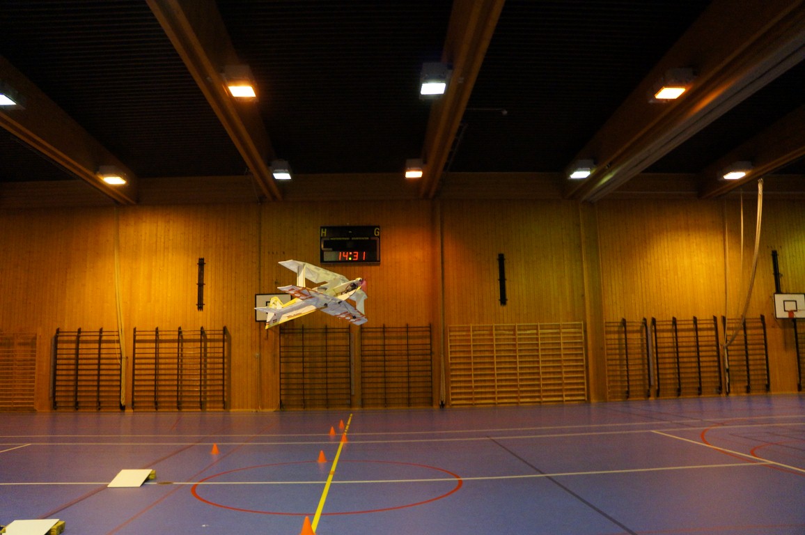 Ikke så stort oppmøte i hallen denne gangen, men allikevel følte jeg at det var mer aktivitet. 2-3 fly og 4-5 biler på banen tenker jeg. Flere morsomme situasjoner oppsto, Champen til Rotor er alltid veldig god underholdning, og denne gangen hadde ppitekk noen morsomme hendelser med indoorflyet sitt også. Motoreksplosjon i lufta, kræsj i vegger og så videre