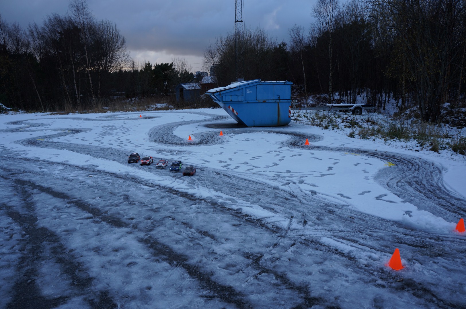 Da var årets Tamiyarally over for denne gang, og jeg med flere syntes at dette løpet var det mest artige vi har kjørt i hele år. Banen var rett og slett en opptråkka løype på en parkeringsplass, og det fungerte over all forventning. Det var akkurat nok snø til å gjøre dette mulig, og vi markerte bare svingene med gule disker og røde kjegler. Snøen ble etterhvert til slaps, noe som skapte en del problemer i form av at bilene ble fylt opp med slaps innvendig, men samtidig så ble det litt realisme i løpet. Veldig kjekt var det iallefall
