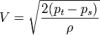 Når Pt er lik Ps får du 101kPa-101kPa = 0 som gir V = 0. Øker Pt, øker farten.