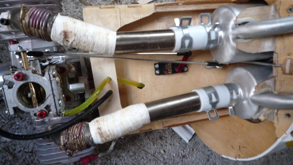 Propellen hadde skade på to blader, spinneren klarte seg nesten men er ødelagt den også. Imsdalflaska er temmelig deformert men er fremdelse tett, funka fint som bensintank.