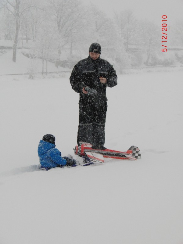 Jeg fikk tatt jomfrutur på flyet idag, men selvfølgelig skulle det snø tett når jeg holdt på. Halvveis inn i andre batteripakken så begynte jeg å høre knitrelyder ved fullt gasspådrag, og da har det blitt vått i motoren :mrgreen: