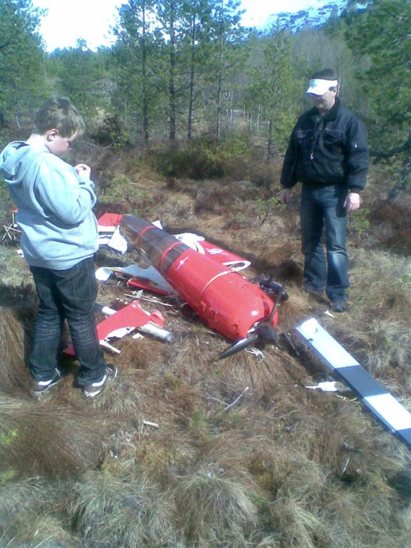 Jeg har altså glemt å koble til det ene av to batterier og har altså flydd kun med det ene batteriet tilkoblet mottakeren og gikk altså tom for strøm, jeg måtte bare stå å se flyet dundre ned i skogen uten at jeg kunne gjøre noe som helst.