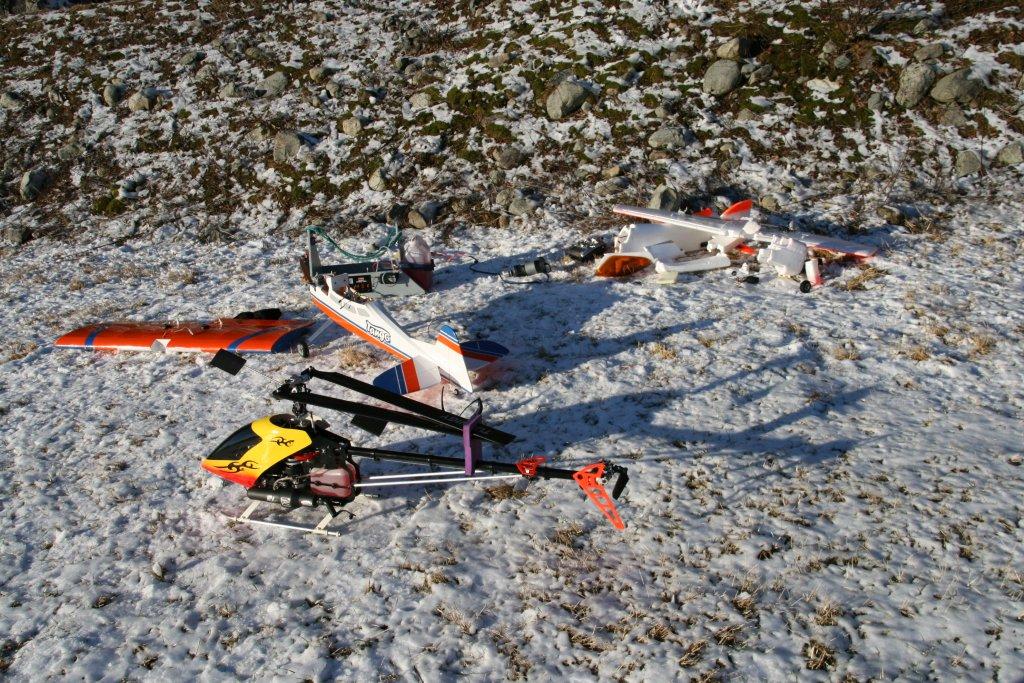 Plutselig hørtes en lyd som for meg er meget kjent: Frrrrrrrrrrrrrr... og der forsvant høyderoret til yalla og det bar rett nedover selvsagt da det skjedde i lav høyde. Ingen av oss trodde YS`n skulle overleve møtet med frossen mark rett ned med full guffe, men mirakuløst nok så såg den uskadd ut. Rainbowen hans var bra knust, nesten på høyde med den jeg tok på samme måte der inne for et par måneder siden