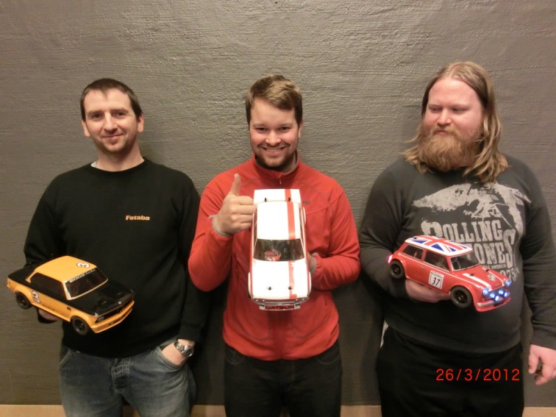 A-finalen ble vel egentlig dominert av Håvard, han tok ledelsen etter uhell fra både min og Terje sin side, og kjørte bra helt frem til mål. Opphenting ble påbegynt, men når lederen kjører bra, så må vi som følger etter pushe grensene ekstra mye for å i det hele tatt å ha en sjanse for innhenting. Dette fører da til små marginer som igjen fører til litt for mye touch i svingene. Idag ble det rett og slett litt for vanskelig :cry: