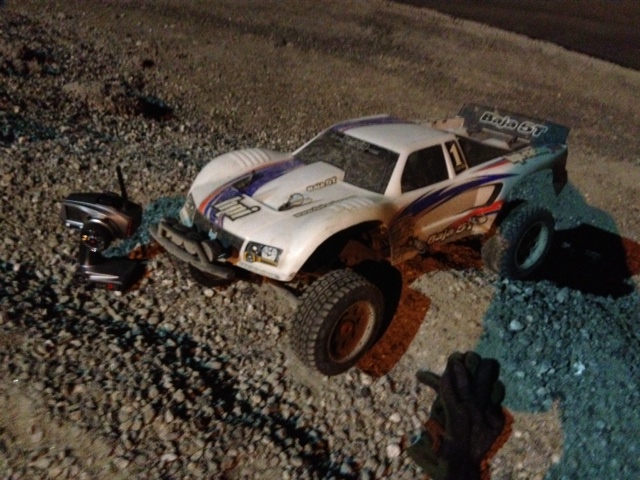 Jaja, kor skal eg begynne. Kjøpte en Baja 5T av stressballen for noen måneder siden og kjørte som en gris med den dei første dagane. Det gjekk jævli bra heilt til batteriet til elektronikken gjikk tom for strøm. Gass servoen låste seg på full spiker men styringen var intakt så eg klarte og svinge unna noen tilskuere som stod og såg på. Hadde et alternativ og det var rett og slett å sende den i det nærmeste gjerde som var der. Der sto bilen og spant med knust servoredder så eg måtte springe inn bak bilen og finne stopp knappen som sitter oppå motoren. (Ambefales ikkje og gjøre 8) ) Så bilen ble stående over en lengre tid med flere forsøk på og få den fikset helt til i gård kveld da eg bestemte meg for at nå skal den fikses. Satt meg ned nå to kvelder og skrudde ut ca dobbelt så masse som var nødvendig, men nå ser alt ut til og fungere helt perfekt. Var en stund redd for at det hadde røket en styreservo. Men fant fort ut at det var bare idioti av meg og ikkje tenke på at batteriet til elektronikken også trenger lading 8) .