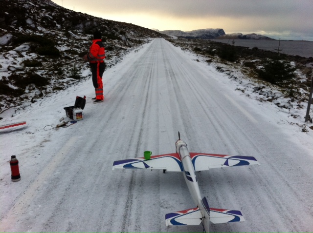 Vi pakker opp bilene i 10-tida og stikker avgårde. Finner en strekke som er noen hundre meter og fly med noe som koster avgårde :D