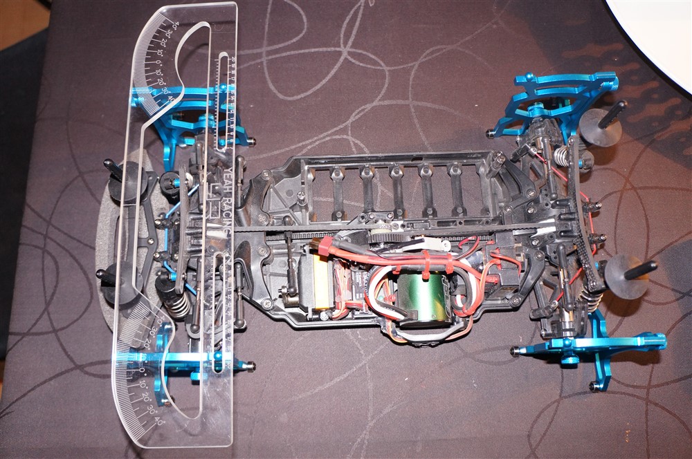 Det fine med denne strekka er at bilene får strekke på beina, og hvis man har rekkevidden, så er det ikke vanskelig å få bygget opp fart, og man har også grei mulighet til å få stoppet bilen også. Med denne bilen på 2S så havnet jeg et sted mellom 80 og 90 km/t, vet ikke helt nøyaktig da denne bilen ikke fikk mesteparten av fokuset. Men kunne konstatere at motor og esc var kald, så jeg vil dreve den litt tøffere til neste gang. Antar at 100 km/t bør være greit å oppnå med denne bilen, og det vil jeg være fornøyd med. Kunne også konstatere at jeg ikke var helt bekvem med styringa (litt vanskelig å kjøre rett, måtte jobbe litt med styringa), og siden jeg har byttet til en presis servo, så regnet jeg med at hjulvinklingen måtte justeres. Når jeg fikk sjekket bilen i setupbenk her hjemme, så var det -1 grad og +1 grad på camber bak, altså 2 grader forskjell. Framme hadde jeg en forskjell på +1 grad og +2 grader camber, altså 1 grad forskjell. Dette forårsaker mest trolig problemet jeg hadde med styringa.