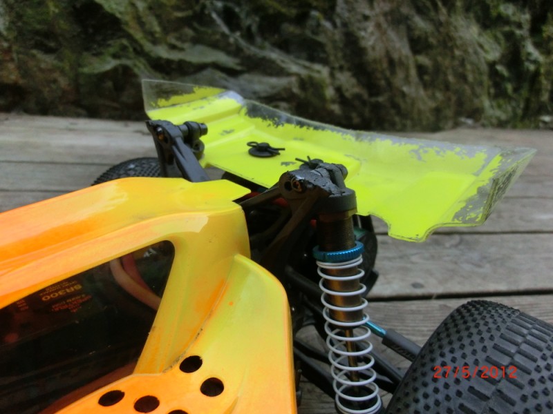 Her kommer noen bilder av bilen. På støtdempertårnet foran kan en se at skruehodene nesten er helt borte. En kan også se det samme på støtdempertårnet bak, pluss at mye av vingen er borte.